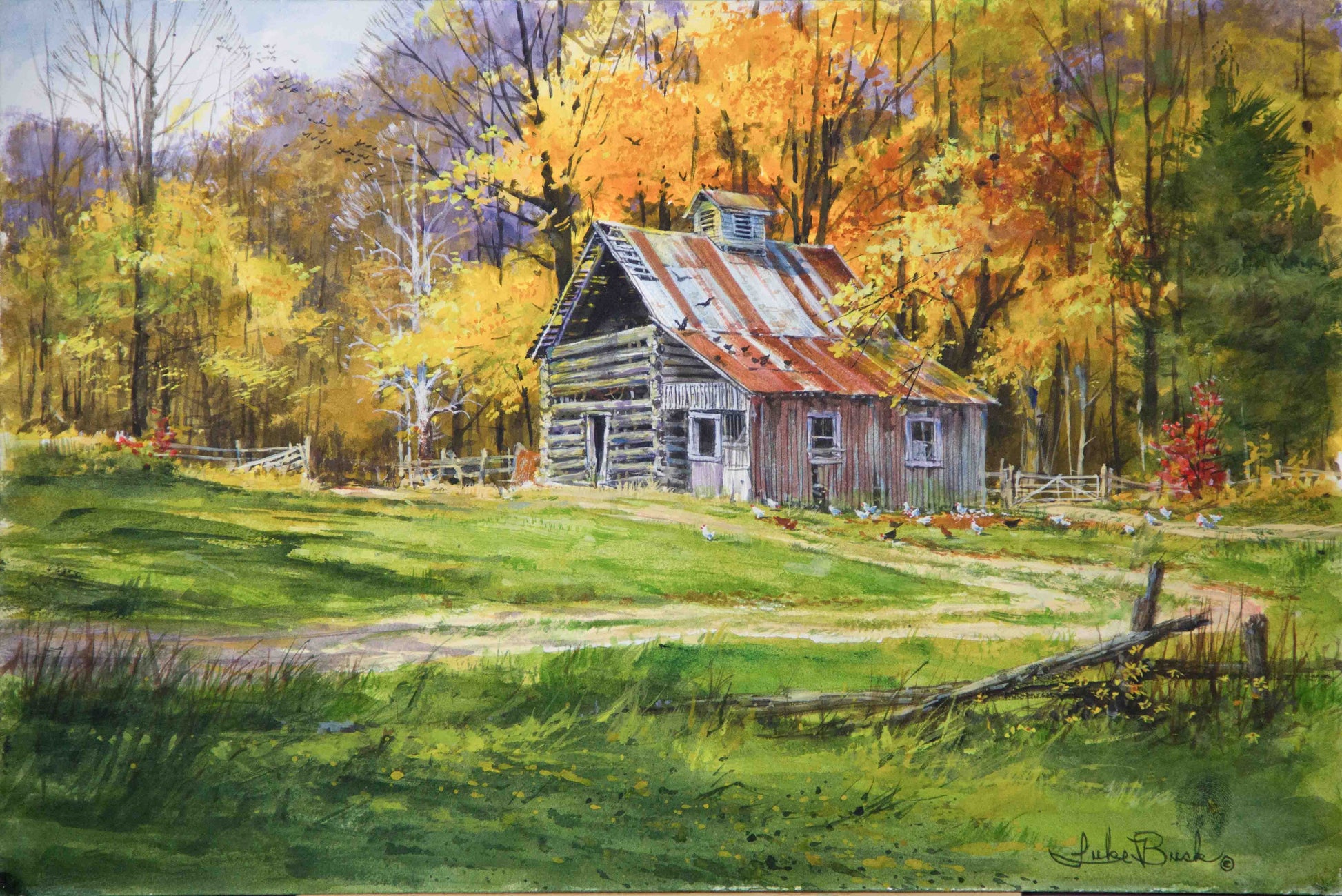 About 30 miles south of my home & studio in Nineveh, Indiana, is beautiful "Yellow Wood Lake" in the Yellowwood State Forest. Below the lake dam is a trail that loops around connecting on back to the highway 46 between Nashville & Bloomington Indiana. I enjoy painting here because the trail is reminiscent of how many of the back roads were in this area when I was a kid, back in the 1940's,unimproved, and having a couple fords crossing the streams instead of bridges. These little forgotten trails are what I enjoy most when it comes to finding a good hide out to paint.