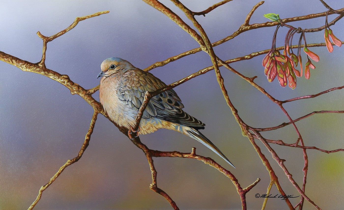 Mourning Dove by Richard Clifton is an original acrylic artwork measuring 12.25" by 20". This authentic painting showcases Clifton’s skilled technique and unique artistic vision.